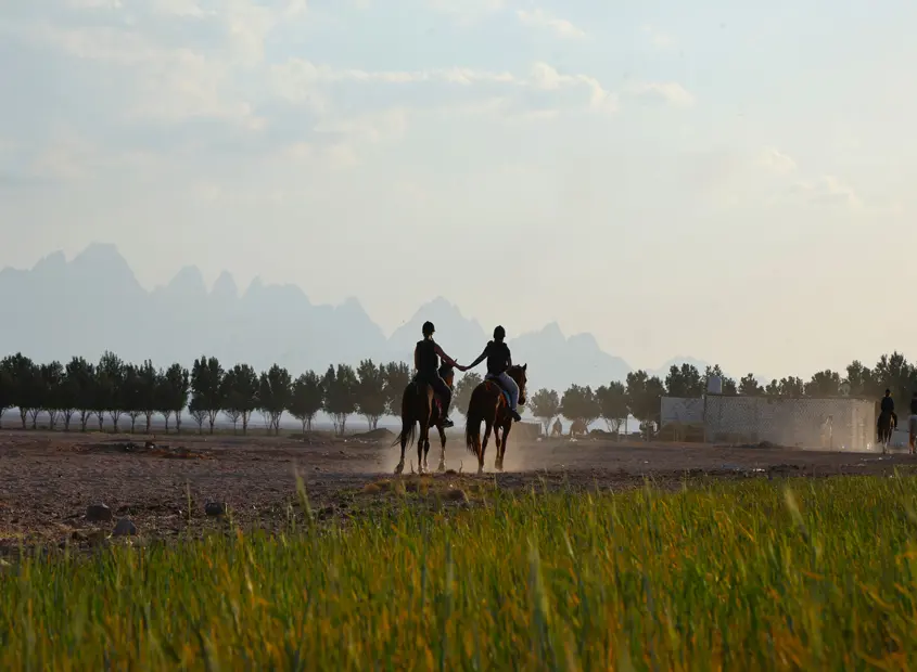 The trip begins with a welcome drink (Bedouin herbal tea) in a Bedouin atmosphere. Then our guide will explain to you how to ride a horse and tell you the safety rules.